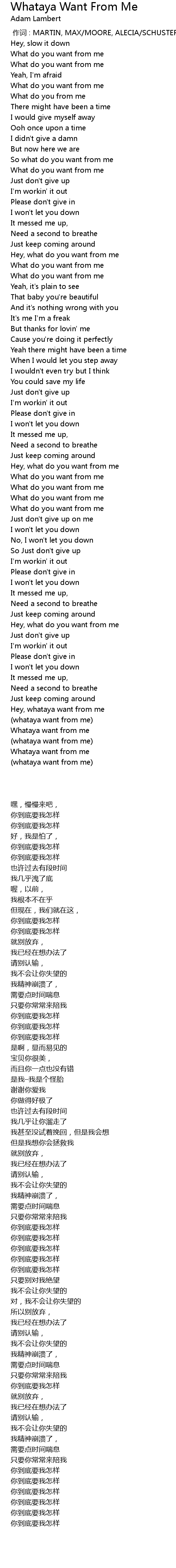 | [00:00.00] | 作词 : MARTIN, MAX/MOORE, ALECIA/SCHUSTER, JOHAN |