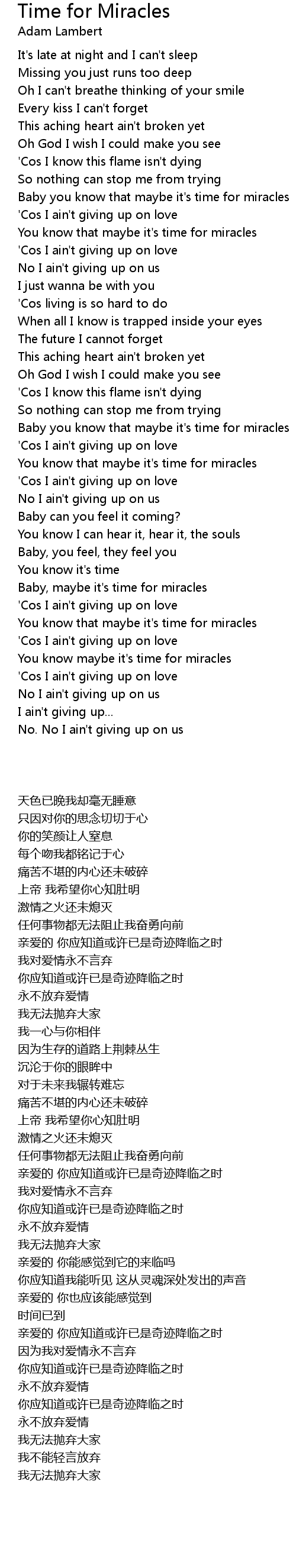 Baby you know that maybe it's time for miracles |