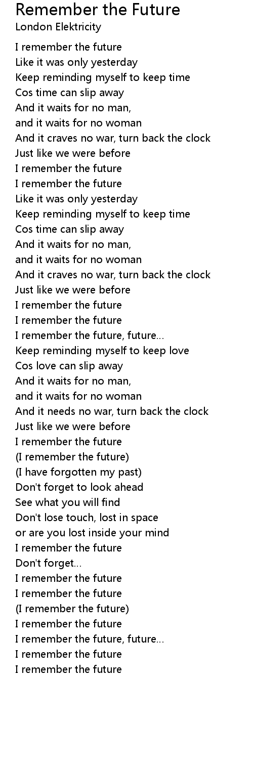 | I remember the future, future | |