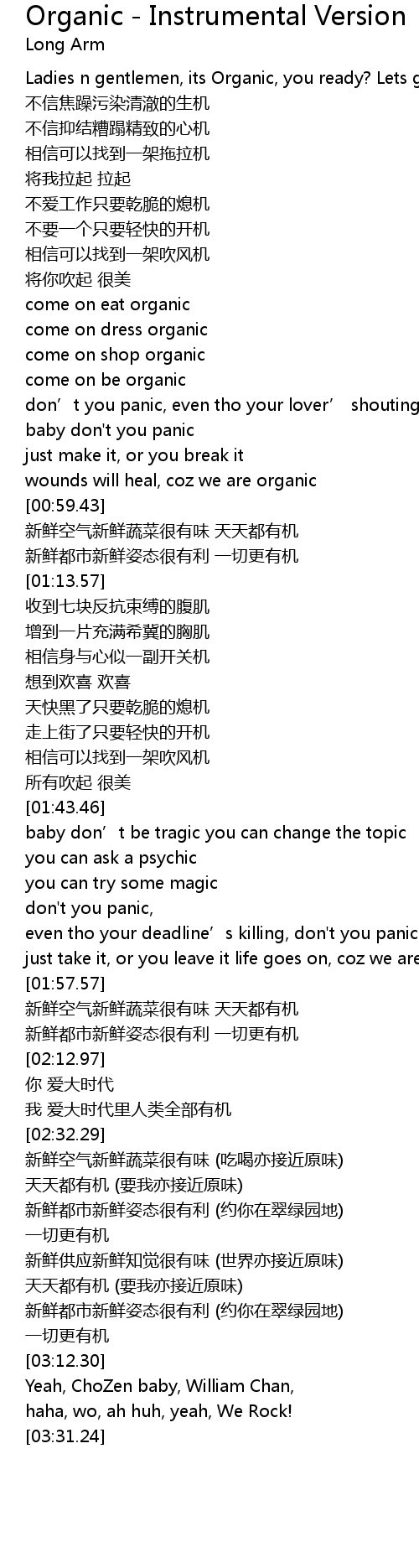 | [03:01.46] | 天天都有机 (要我亦接近原味) |