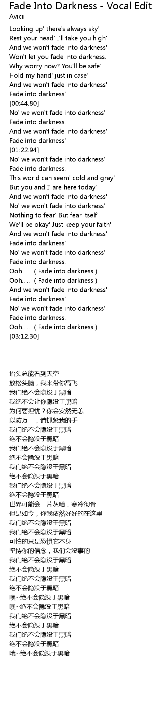 | [02:12.94] | Fade into darkness' |