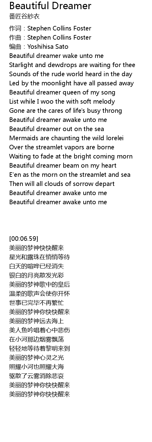 | [00:57.17] | Beautiful dreamer awake unto me |
