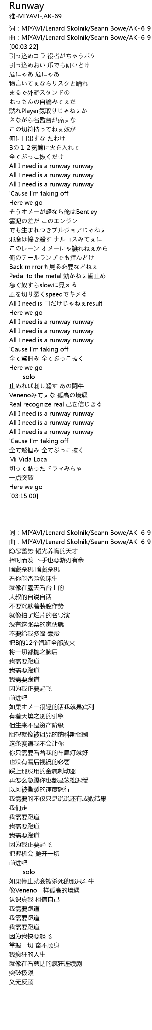 | [00:59.16] | All I need is a runway runway |
