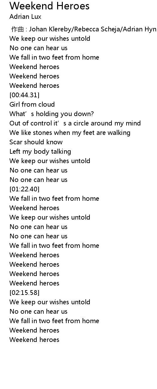 | [01:56.34] | Weekend heroes |