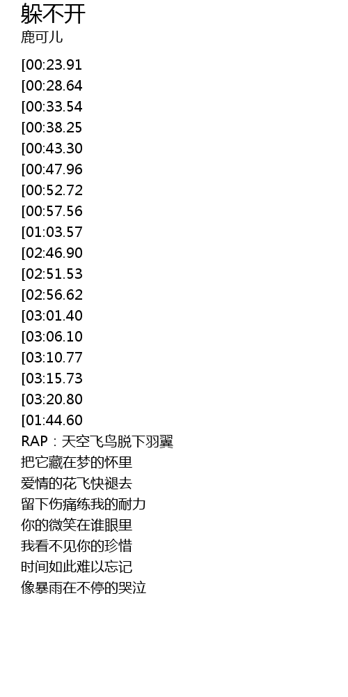| [01:45.65] | RAP:天空飞鸟脱下羽翼 |