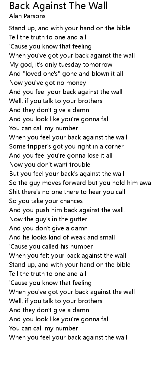 And you feel your back against the wall |