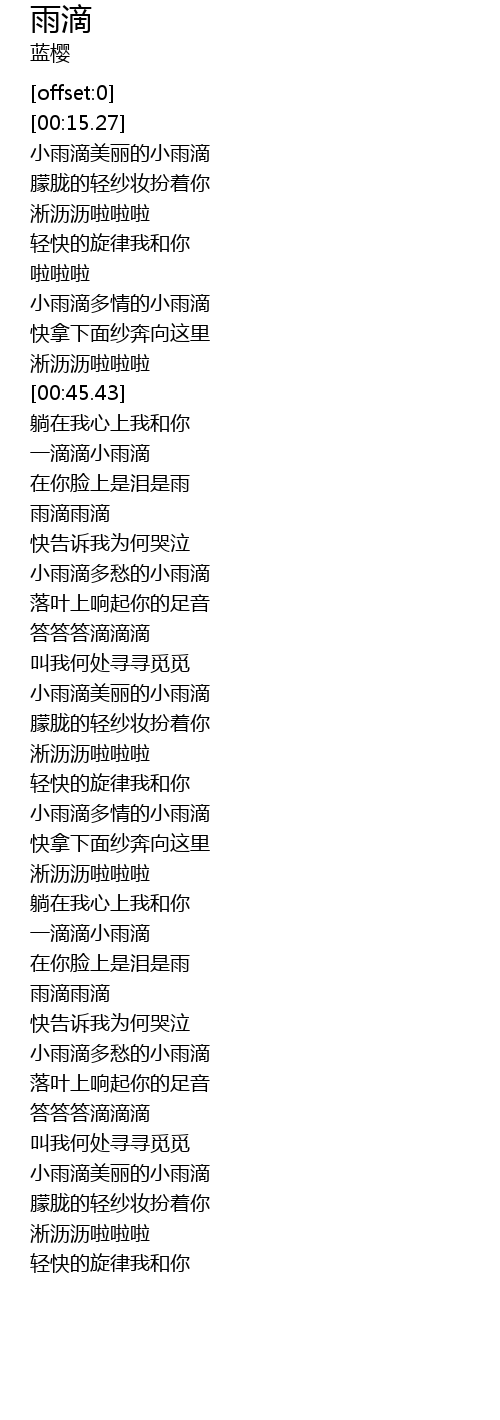 | [01:03.93] | 小雨滴多愁的小雨滴 |