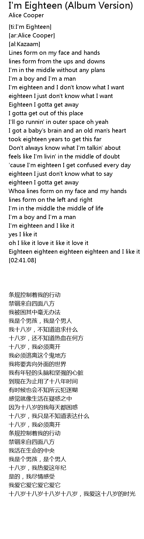 [ti:I'm Eighteen] |