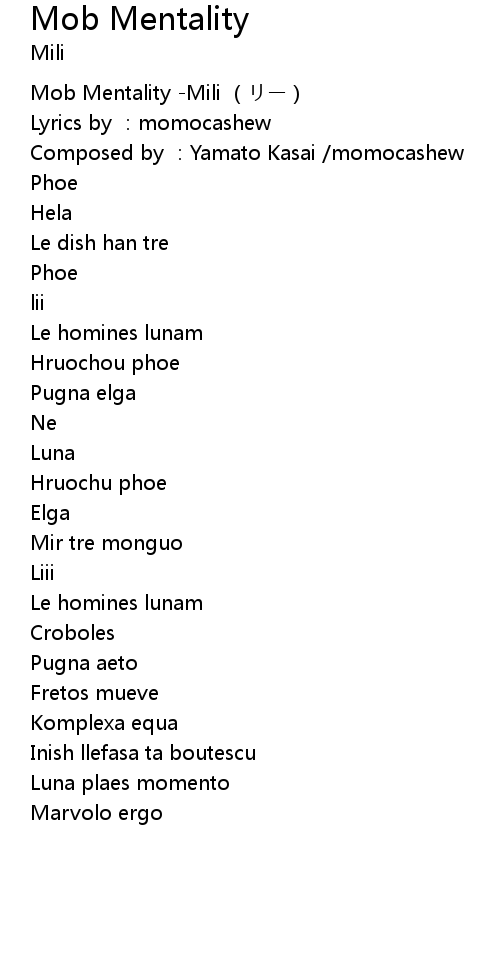| [00:00.00] | Mob Mentality -Mili (リー) |
