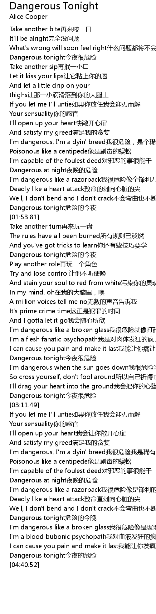 | [04:22.96] | Dangerous tonight危险的今晚 |