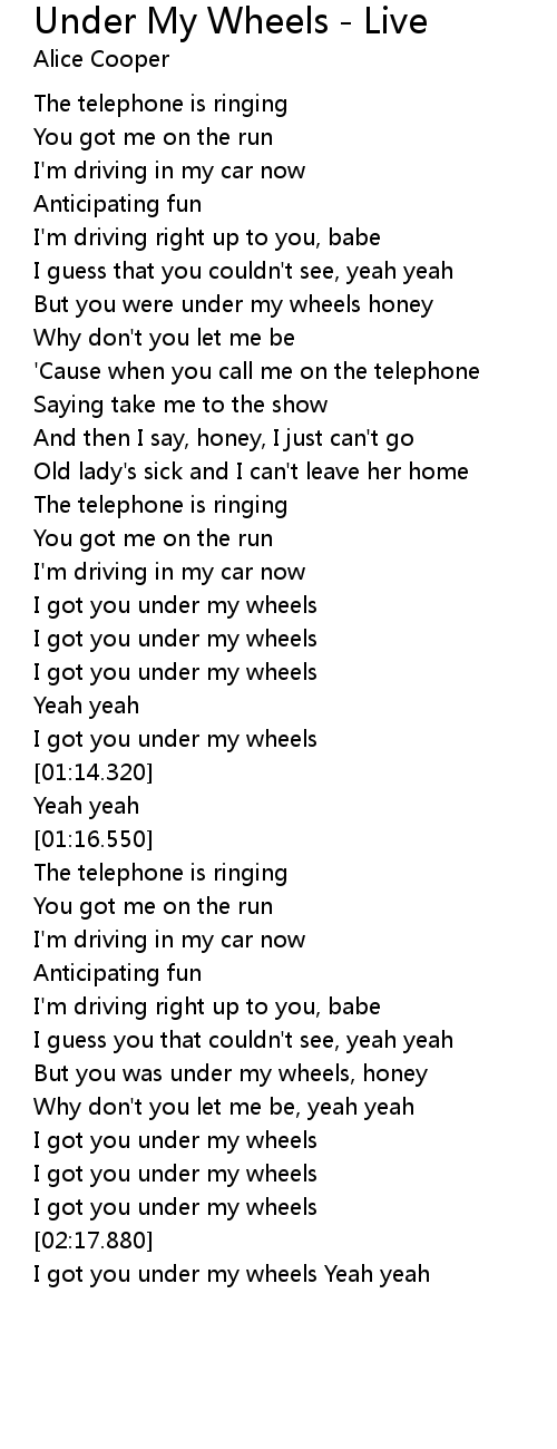 | [02:18.930] | I got you under my wheels Yeah yeah |