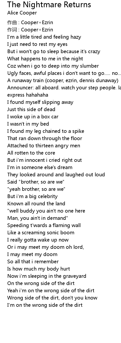 | Song | The Nightmare Returns |