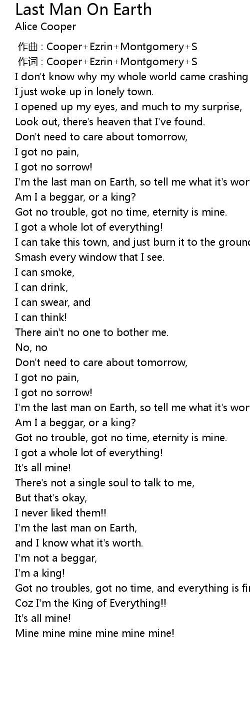 | [02:51.44] | I'm the last man on Earth, |