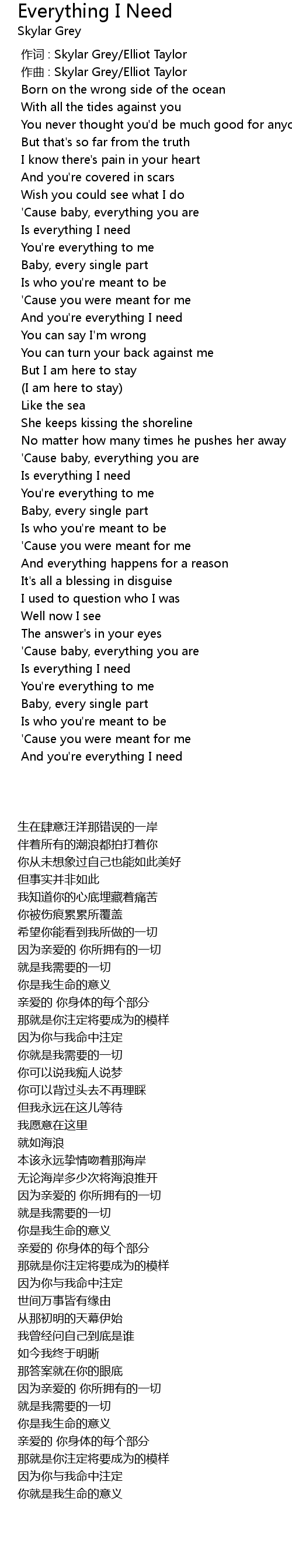| [00:01.000] | zuo qu : Skylar Grey Elliot Taylor |
