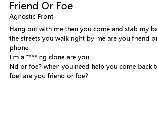 | Nd or foe? when you need help you come back to me are you friend or foe? friend! foe! are you friend or foe? |
