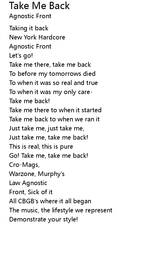 Take Me Back Lyrics