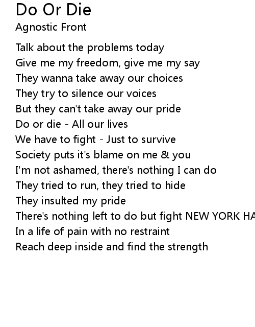| Do or die - All our lives | |