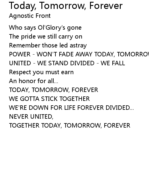 | TOGETHER TODAY, TOMORROW, FOREVER |