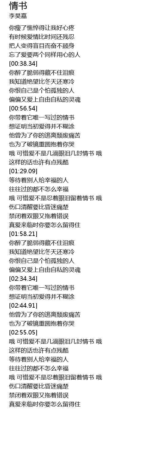 | [00:59.03] | 你带着它唯一写过的情书 |
