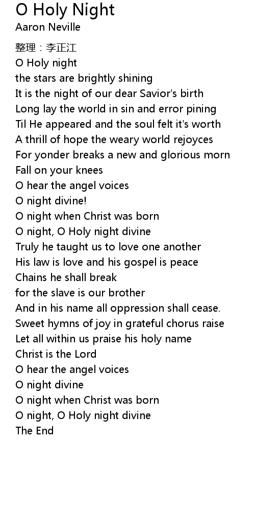 | [00:29.60] | It is the night of our dear Savior' s birth |