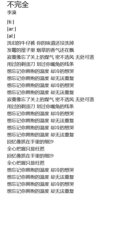 | [03:48.18] | 想忘记你拥抱的温度 却无法重复 |