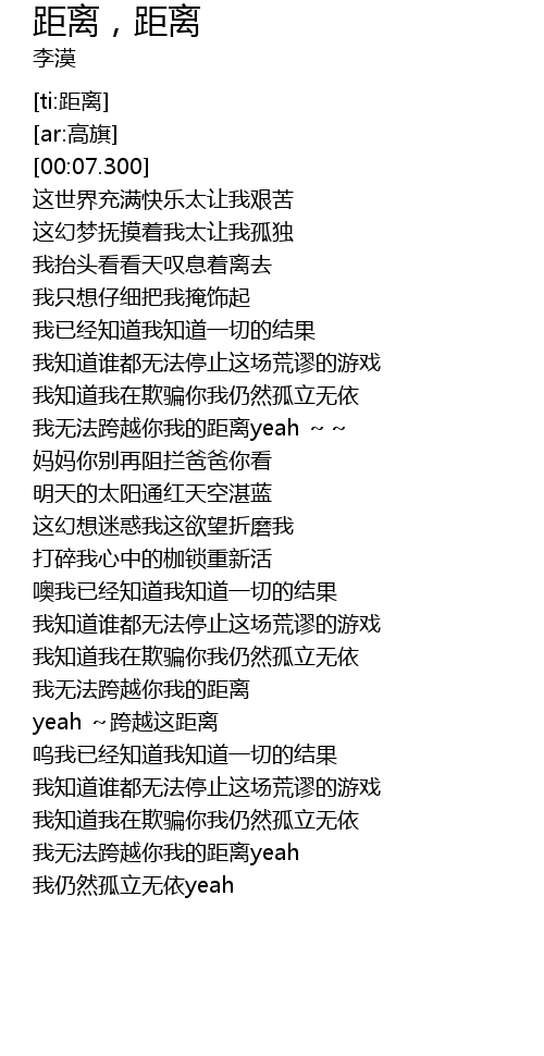 | [01:51.202] | 我无法跨越你我的距离yeah ~~ |