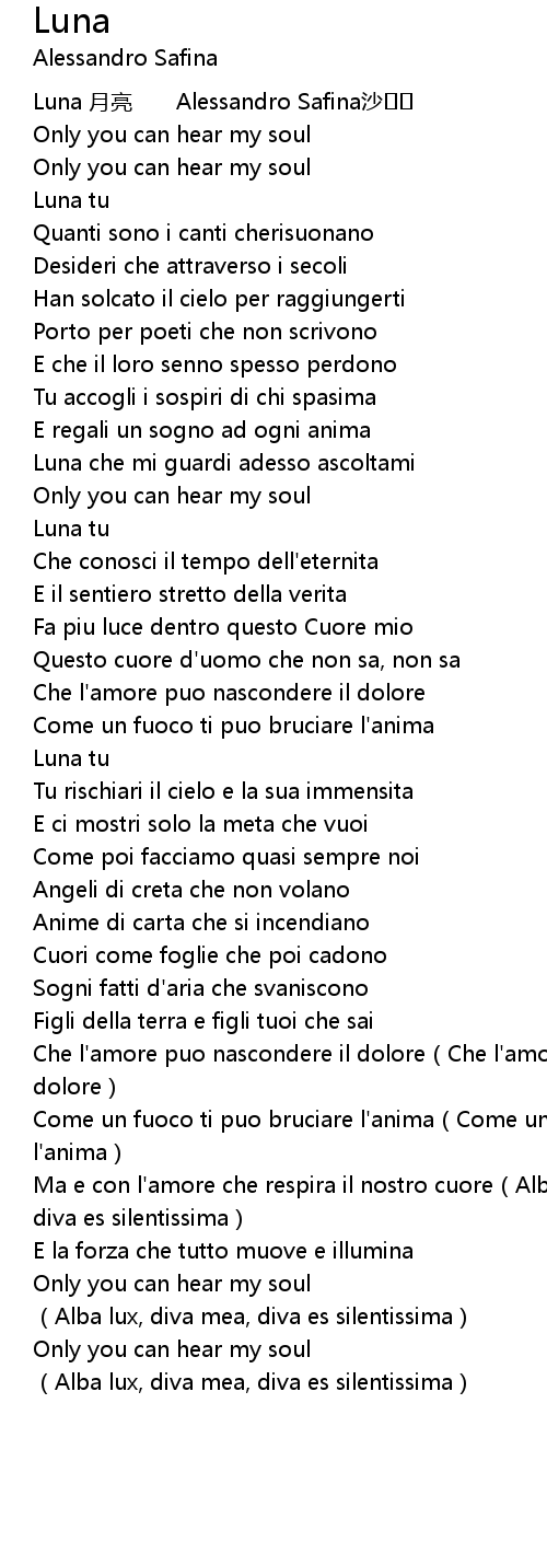 | [00:00.00] | Luna 月亮 Alessandro Safina沙�� |