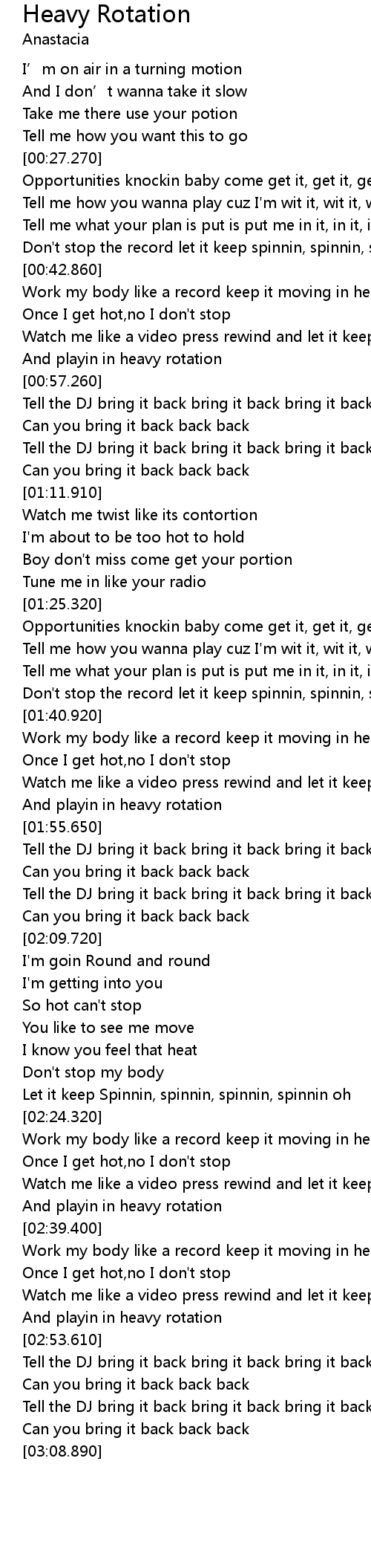 | [00:43.800] | Work my body like a record keep it moving in heavy rotation |