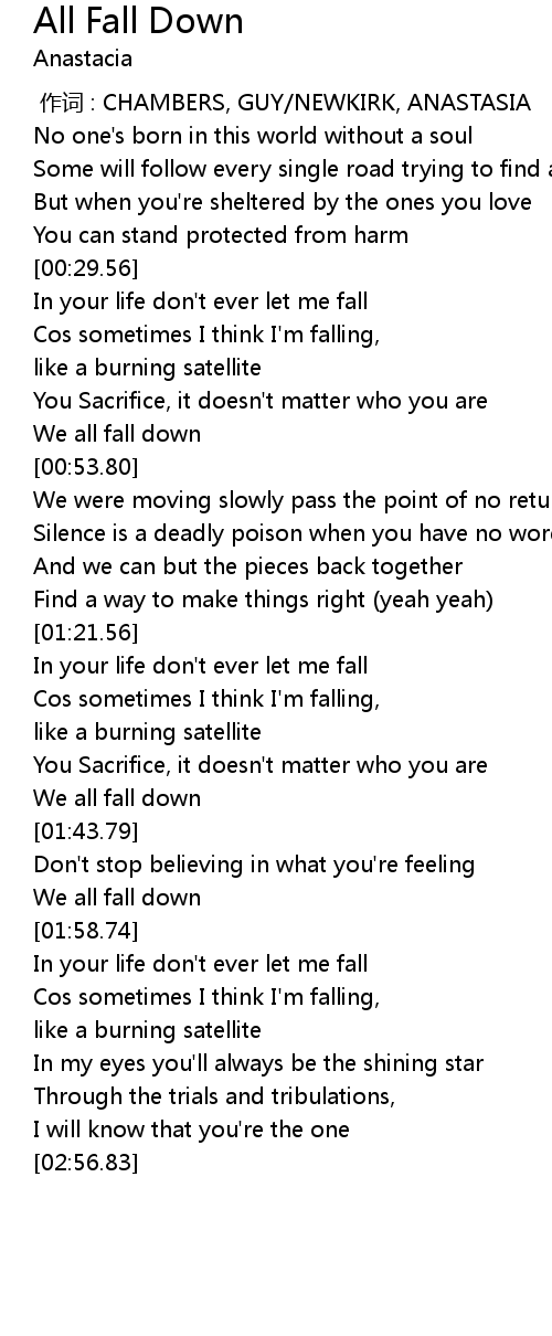 | [00:00.00] | 作词 : CHAMBERS, GUY/NEWKIRK, ANASTASIA |