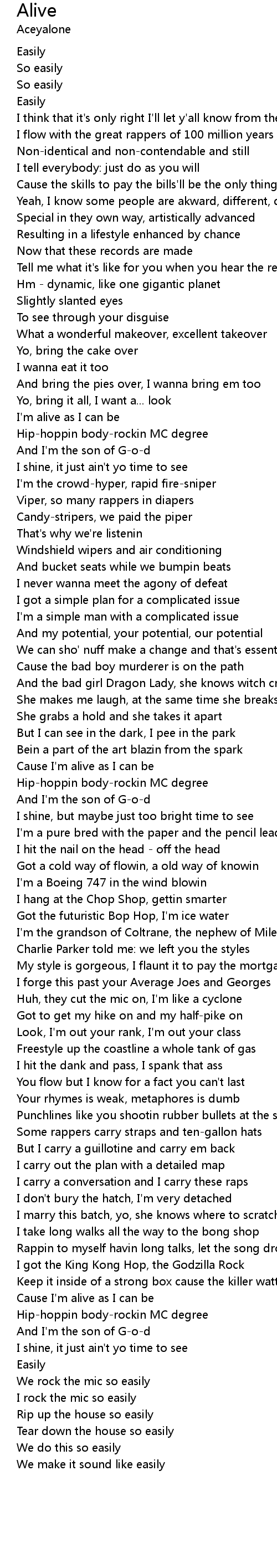 Cause I'm alive as I can be |