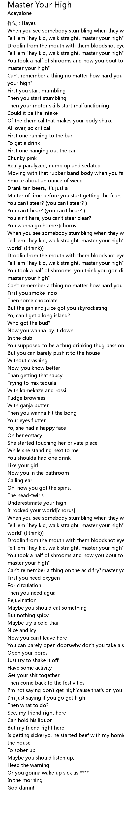 | Can't remember a thing no matter how hard you try"master your high" | |