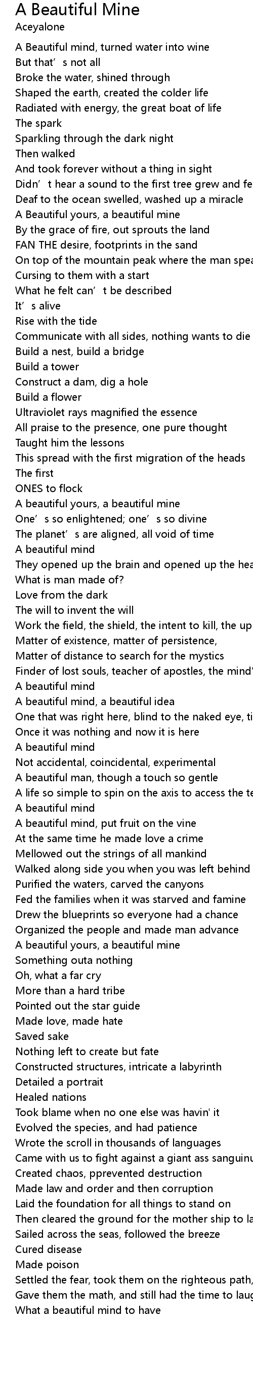 | A Beautiful mind, turned water into wine | |