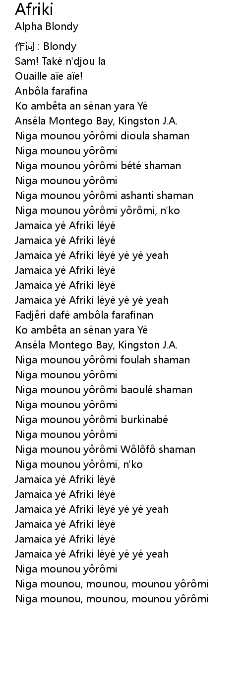 | Jamaica yé Afriki léyé yé yé yeah | |