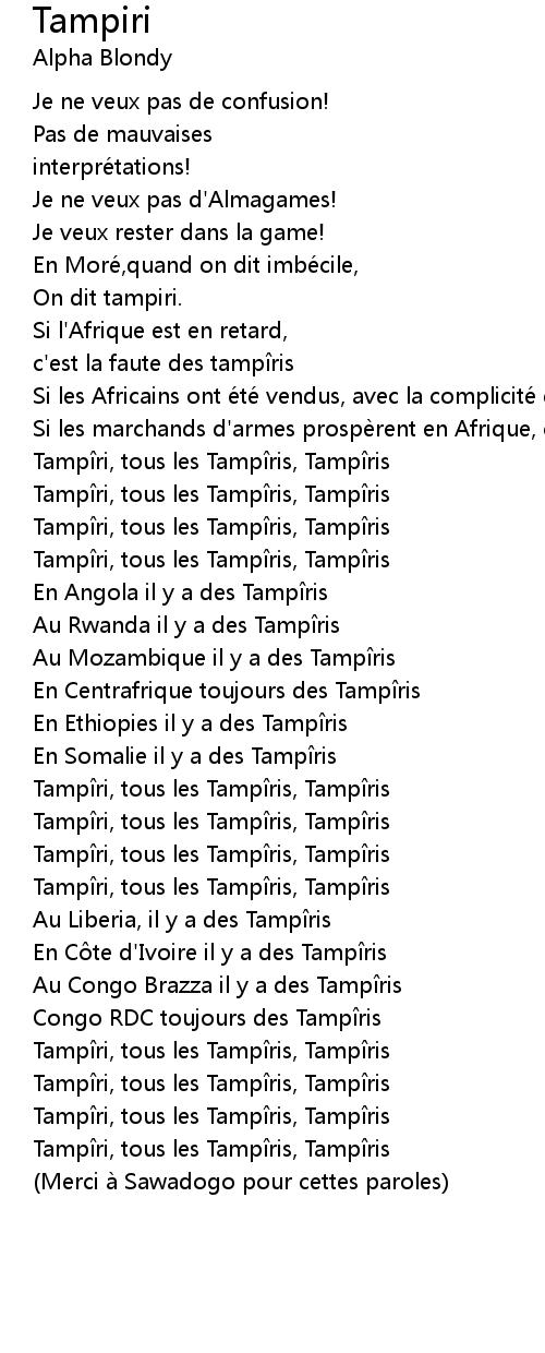 | Si les marchands d' armes prospè rent en Afrique, c' est la faute des Tamp ris. | |