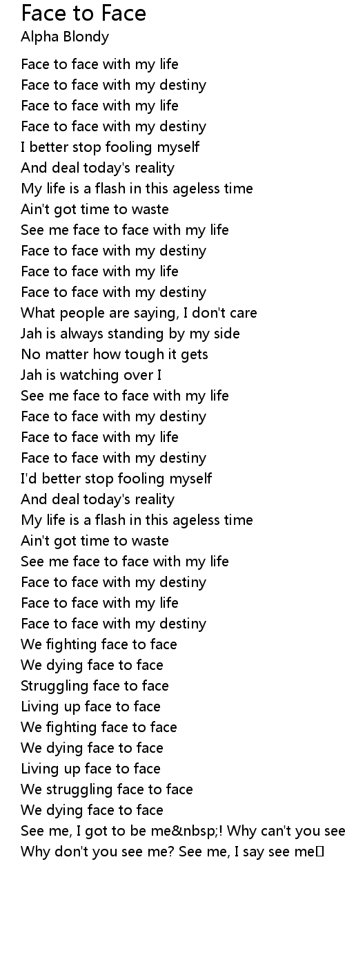 | See me face to face with my life | |