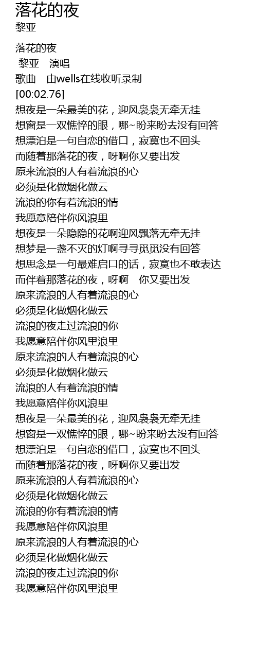 | [00:00.80] | 落花的夜 |