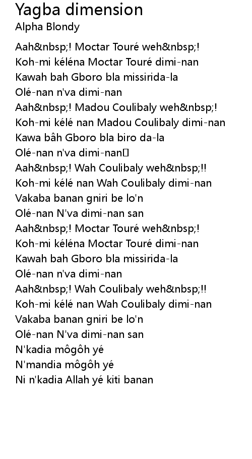 | Kohmi ké lé nan Wah Coulibaly diminan | |