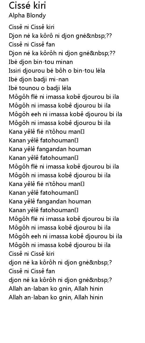 | Môgôh eeh ni imassa kobê djourou bi ila | |