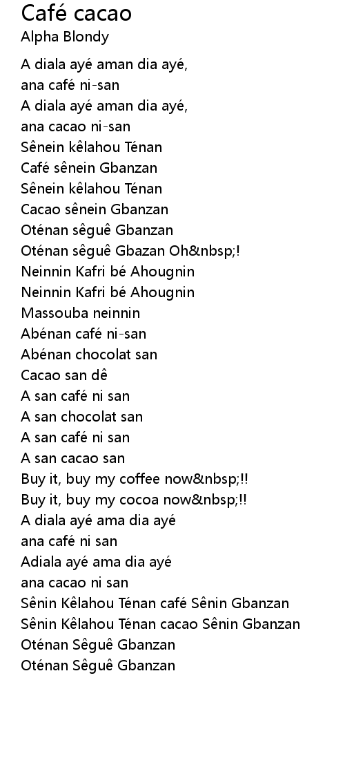 | Song | Café cacao |
