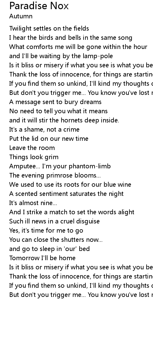 | But don't you trigger me... You know you've lost my heart to the paradise night |
