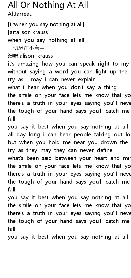 | [00:04.140] | when you say nothing at all |