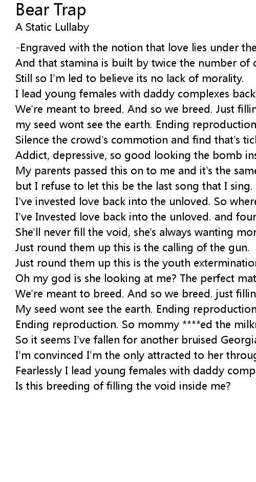 We're meant to breed. And so we breed. Just filling the void inside me. |