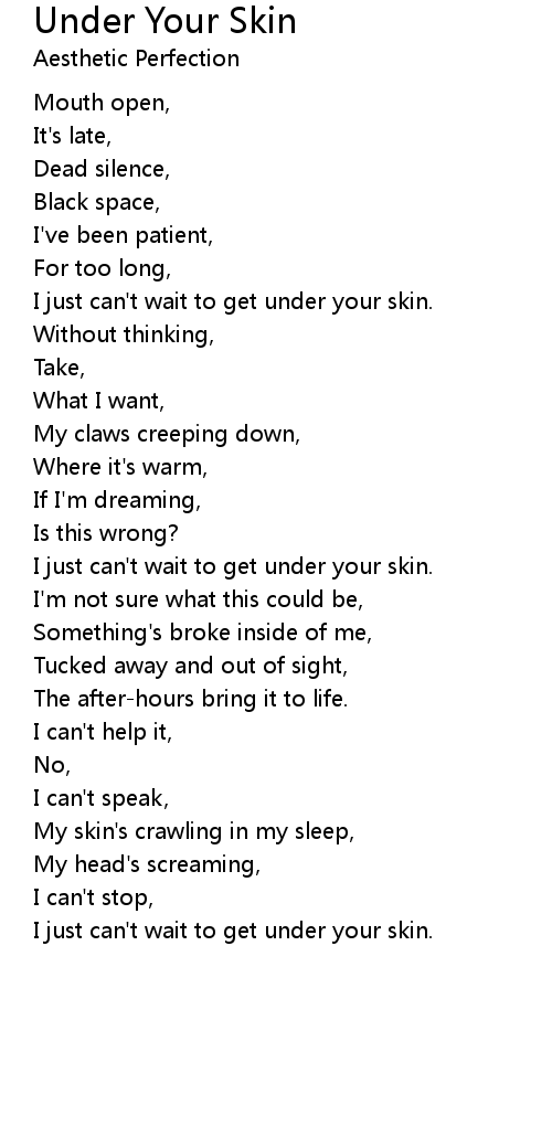 I just can't wait to get under your skin.