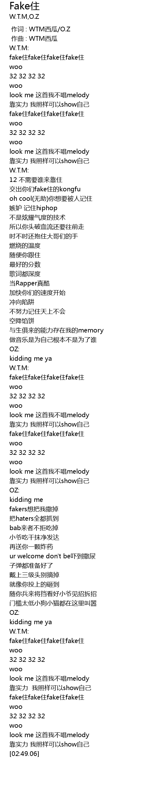 | [02:36.88] | fake住fake住fake住fake住 |