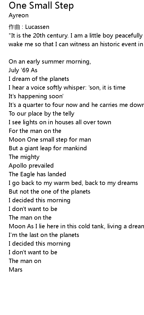 | "It is the 20th century. I am a little boy peacefully asleep. My father comes to wake me so that I can witness an historic event in the finite story of mankind." [Edward Reekers, Lana Lane] | |