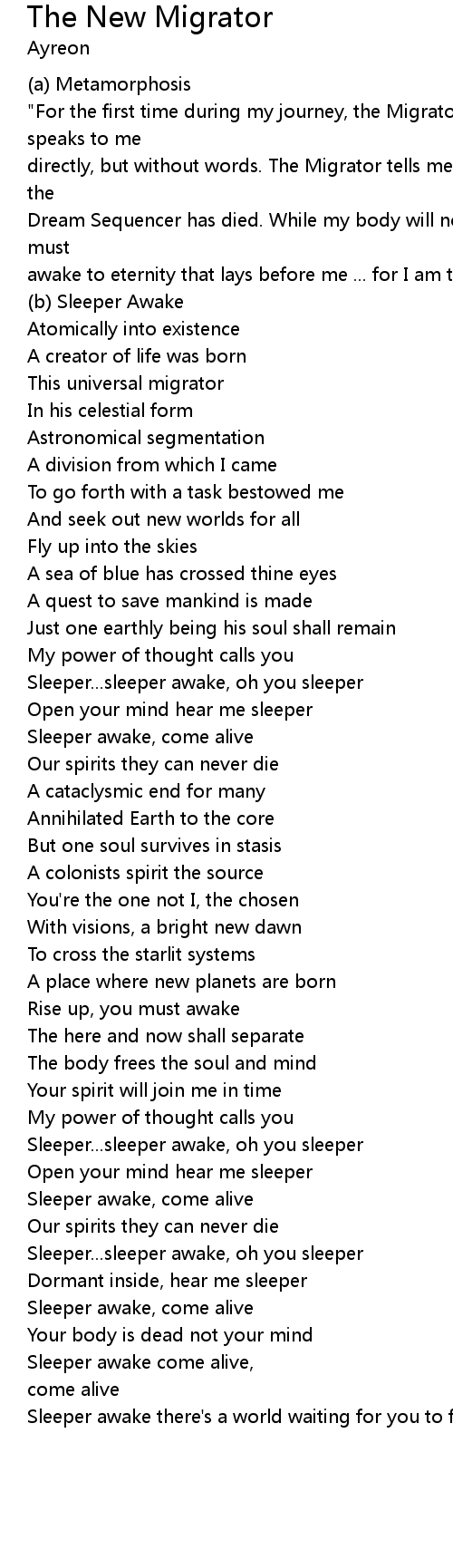awake to eternity that lays before me ... for I am the new Migrator!" |