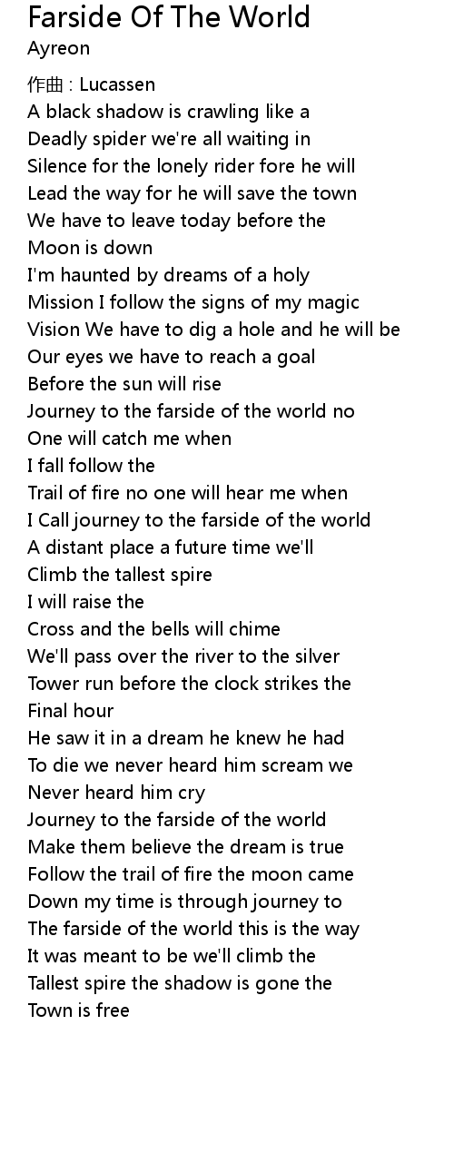 | Song | Farside Of The World |