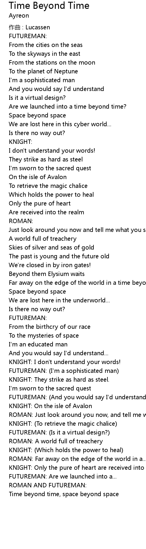 | Song | Time Beyond Time |
