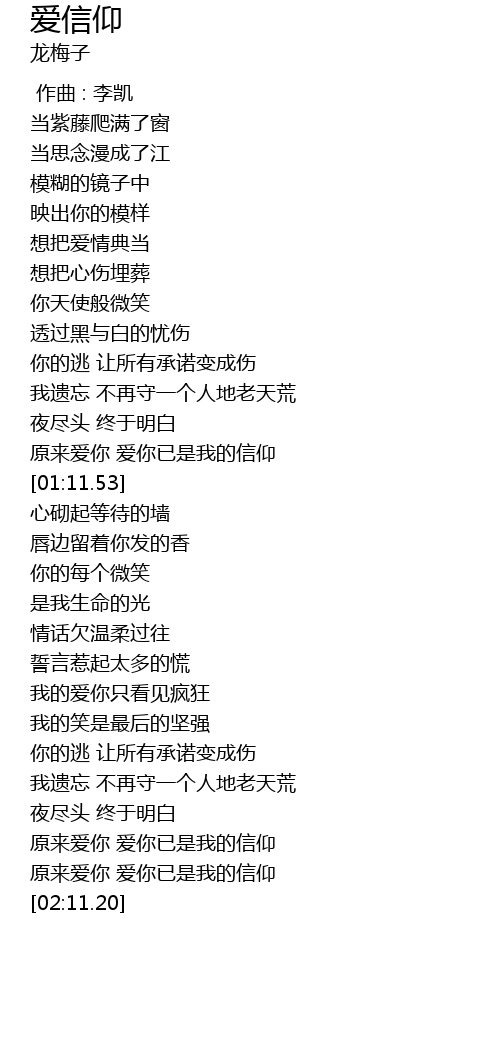 | [02:01.62] | 原来爱你 爱你已是我的信仰 |