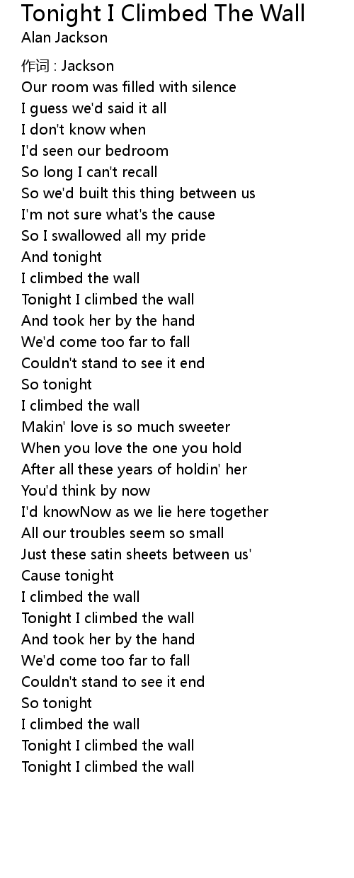 | Tonight I climbed the wall | |